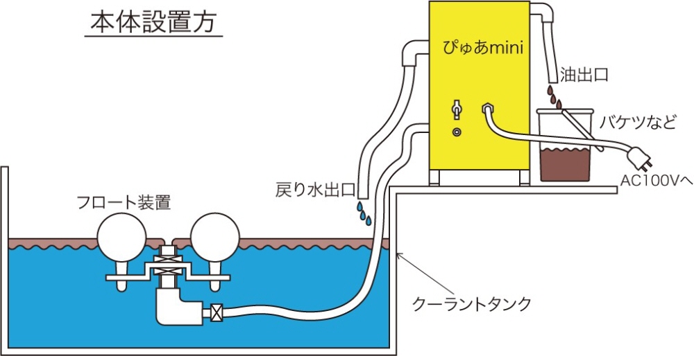 ・この装置は工作機械や洗浄機などの浮上油回収用に開発されたものですので、他の用途には使用しな いでください。